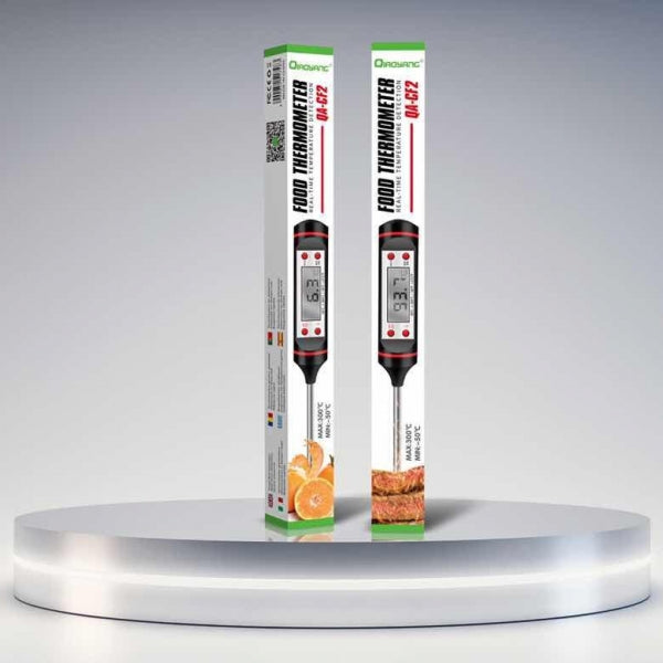 Termómetro Digital para Alimentos QA-CF2 – Precisão e Praticidade na CozinhaO Termómetro Digital para Alimentos QA-CF2 é o aliado perfeito para garantir a precisão nas suas receitas. Ideal para medir a temperatura de carnes, líquidos, e outros alimentos, proporciona resultados rápidos e confiáveis, ajudando a atingir a perfeição culinária.Características Principais:Medição Precisa:Mede temperaturas entre -50°C e 300°C, ideal para diferentes tipos de preparações.Display Digital:Leitura rápida e clara da temperatura.Sonda de Aço Inoxidável:Resistente e segura, compatível com diversos tipos de alimentos.Design Compacto:Leve e fácil de transportar, ideal para uso doméstico ou profissional.Fácil de Usar:Basta inserir a sonda no alimento para obter a leitura instantânea.Benefícios:Assegura o ponto ideal de cozimento.Reduz o risco de subcozinhar ou queimar os alimentos.Perfeito para preparar carnes, confeitaria, ou controlar a temperatura de líquidos como sopas e molhos.Especificações Técnicas:Modelo:QA-CF2Intervalo de Temperatura:-50°C a 300°CMaterial da Sonda:Aço inoxidávelTipo de Alimentação:BateriaFunções Adicionais:Desligamento automático para economia de energia