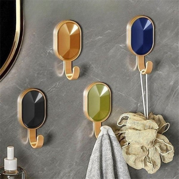 Gancho Decorativo Oval com Acabamento DouradoAdicione praticidade e estilo ao seu ambiente com este gancho decorativo oval, perfeito para pendurar toalhas, acessórios ou chaves, enquanto embeleza o espaço.Características:Design elegante:Formato oval com detalhes geométricos e contorno dourado.Cores disponíveis:Preto, dourado, azul e verde.Resistência e funcionalidade:Suporta até 3 kg, ideal para diversos objetos do dia a dia.Instalação prática:Adesivo forte que dispensa perfurações na parede.Material de qualidade:Feito com plástico ABS durável e acabamento premium.Especificações:Dimensões:8 x 6 cm (aproximadamente).Peso suportado:Até 3 kg.Aplicação:Adequado para casa de banho, cozinha, hall ou quarto.
